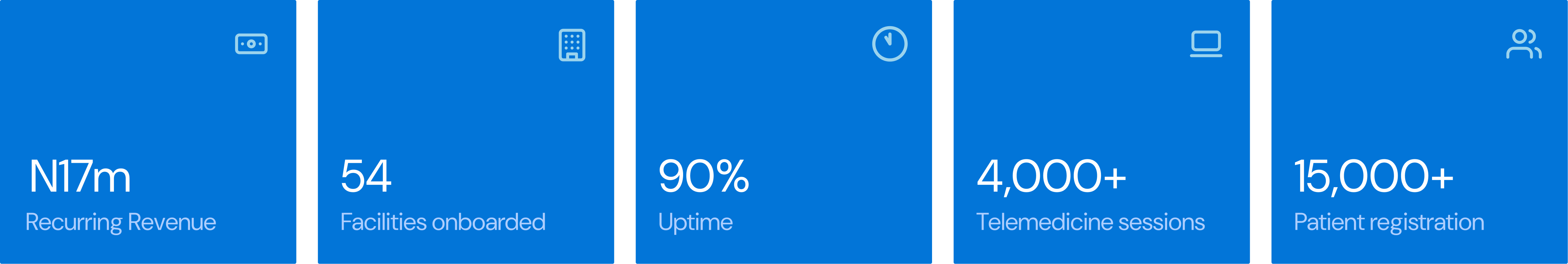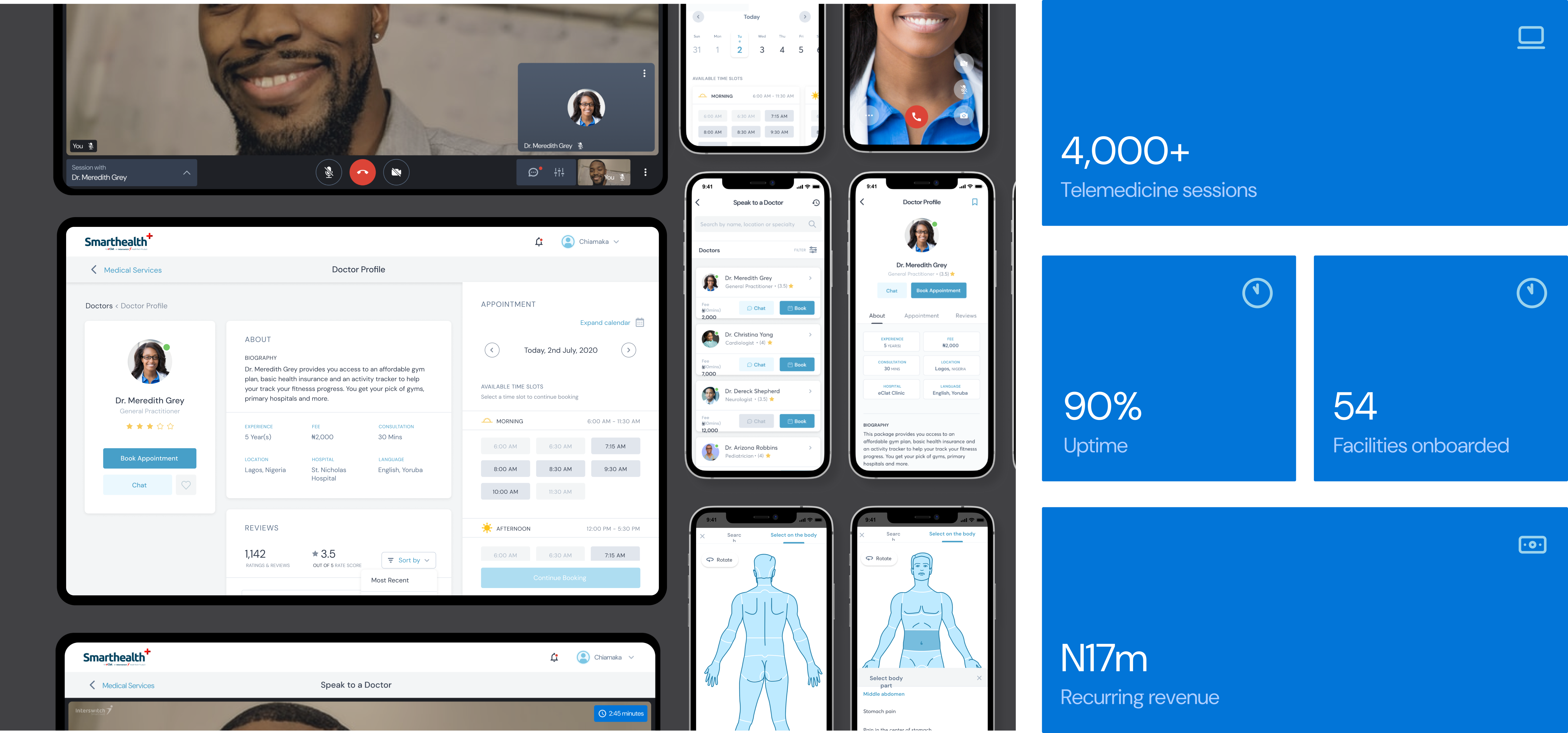My design efforts and hands on approach contributed to over 4000 telemedicine sessions, 90% uptime and a reccuring revenue in the health technology product portfolio of 17million Naira