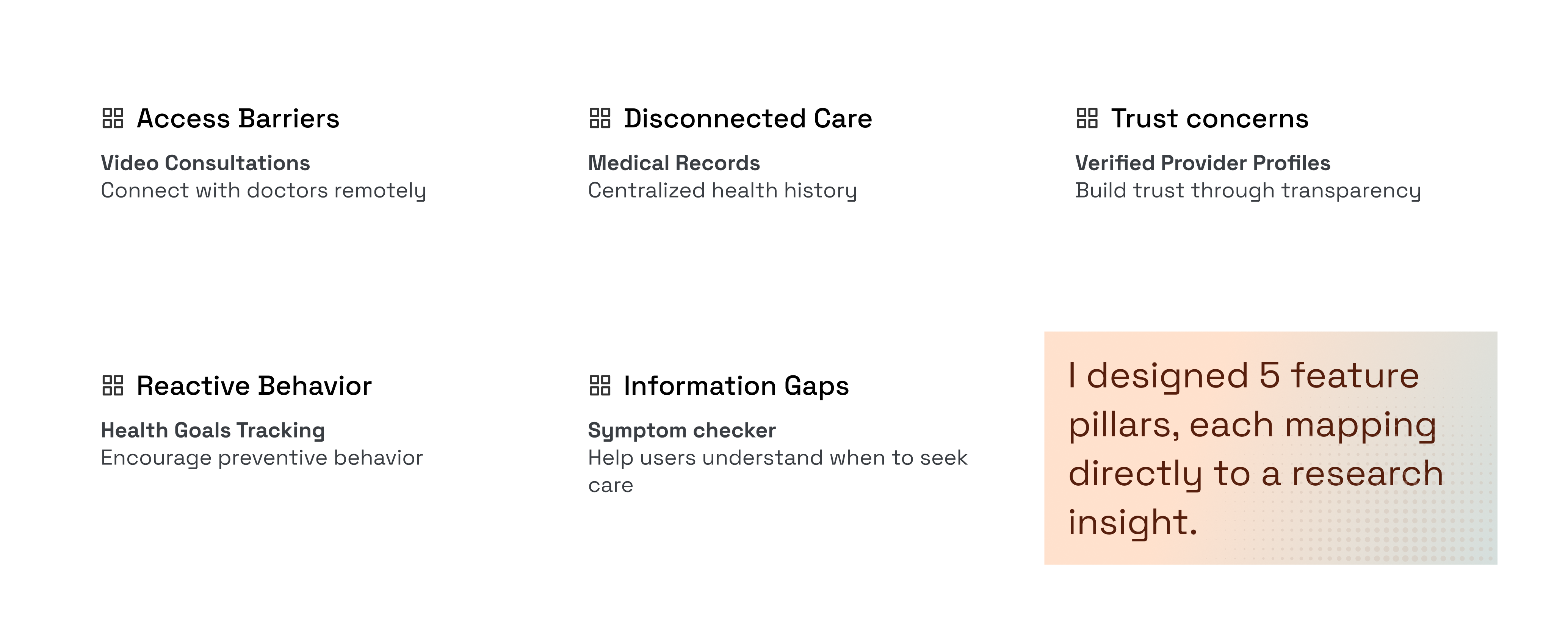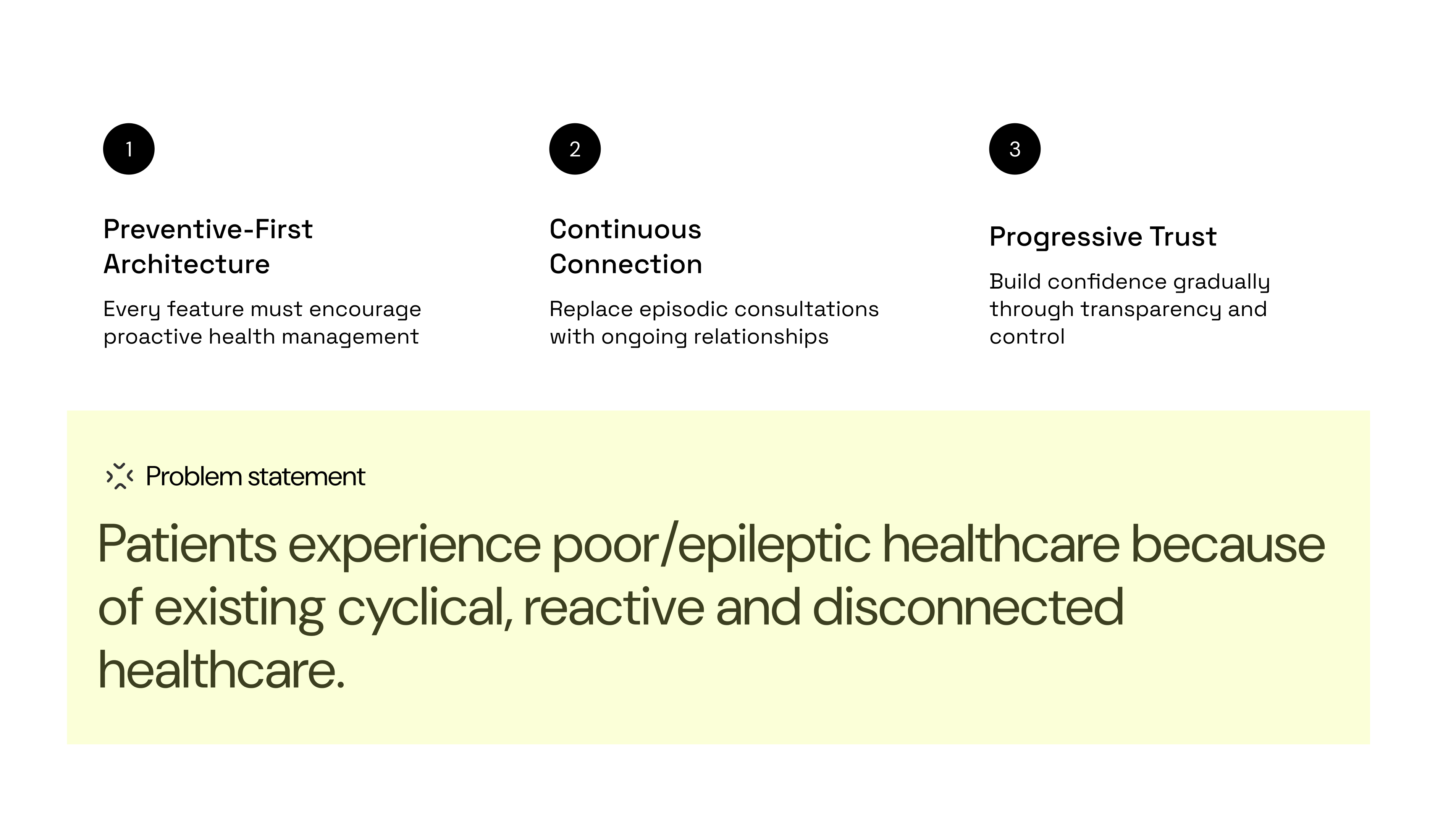 Reframing the challenge, Rather than simply digitizing existing (broken) healthcare access, we needed to redesign the care paradigm itself. To do this, we developed a 3-pillar design strategy: